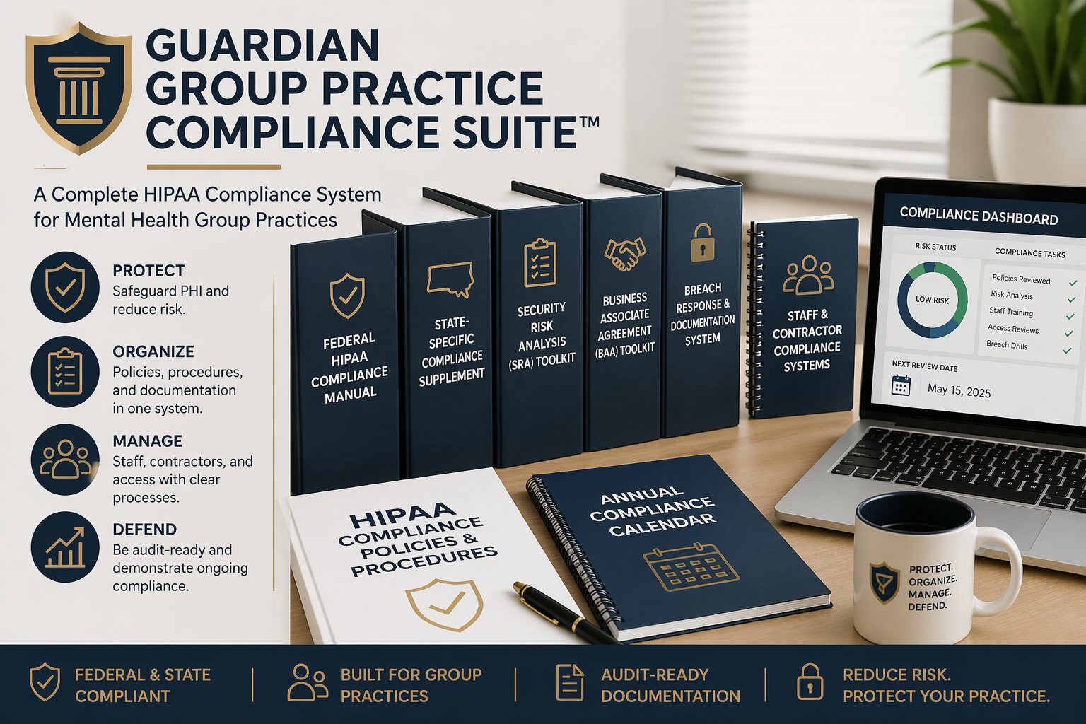 The Guardian Group Practice Compliance Suite™ provides a complete, structured system for managing HIPAA compliance within a multi-provider practice.